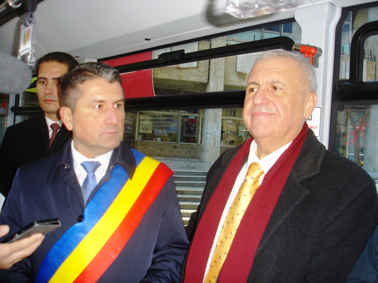 Türkiye’nin Köstence Başkonslosu Sulhi Turan ve Köstence Belediye Başkanı Decebal Fagadau, Milli Gün törenlerinin hemen ardından bir otobüsün içerisinde basın toplantısı düzenlediler. Törene AB Fon ve Anadolu Otomotiv yetkilileri de katıldı.