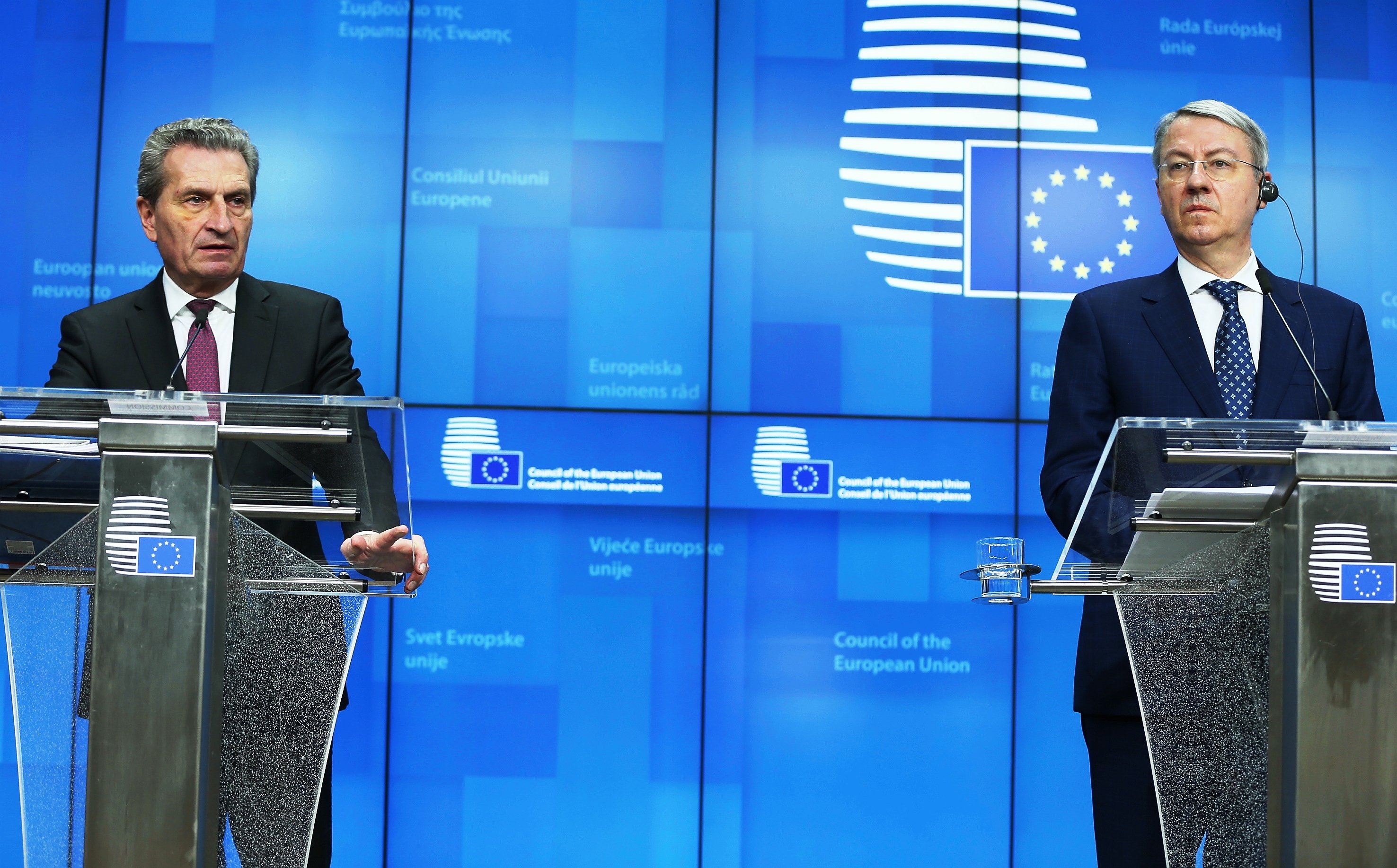 AB Genel İşler Toplantısına katılan Romanya’nın AB Bakanı George Ciamba, AB Komisyonu’nun bütçeden sorumlu üyesi Günther Oettinger, Brüksel’de basın toplantısı düzenledi.