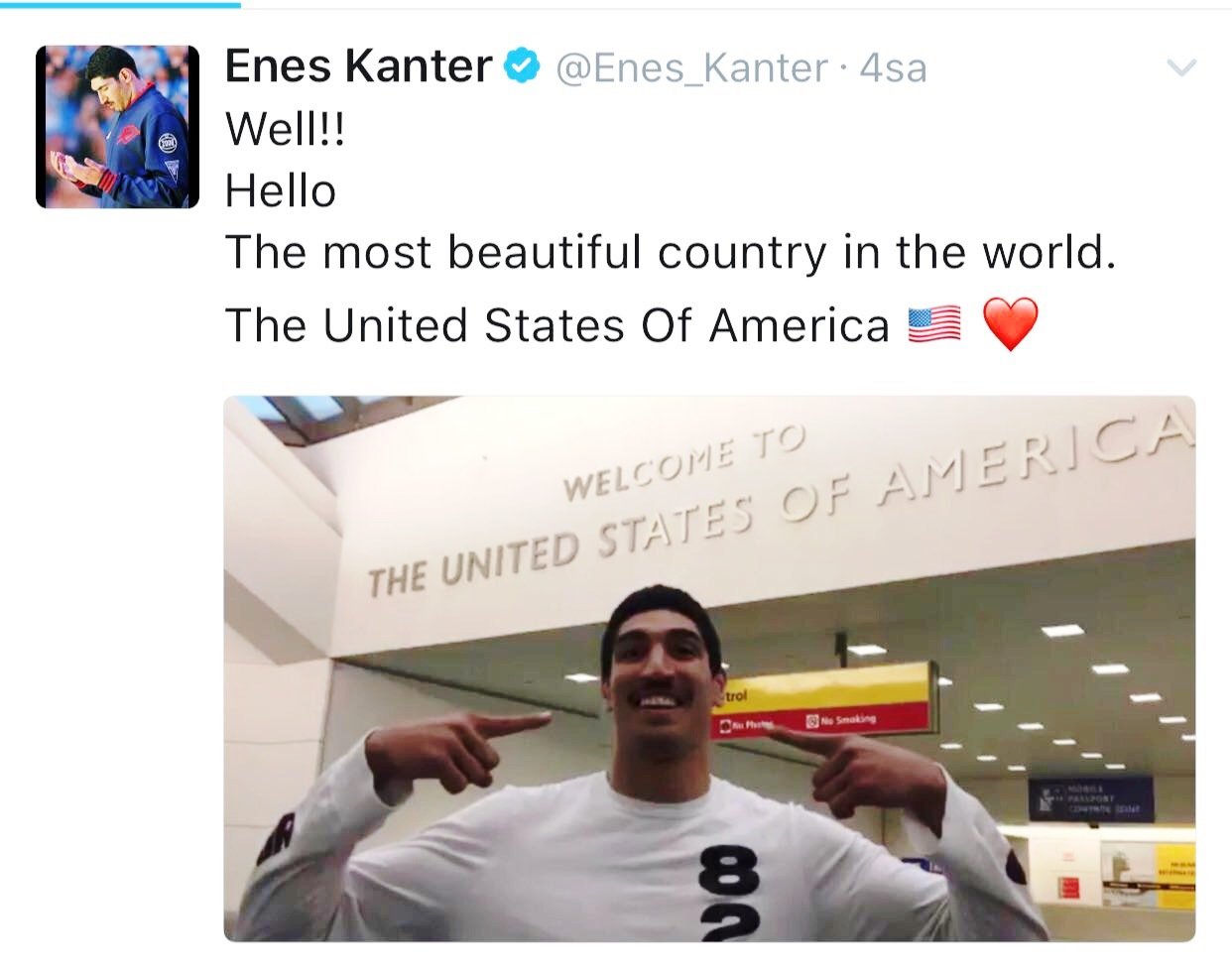 Takımı NBA’nın 17 Ocak’ta Londra’da oynanan maçına İngiltere vize istediği, onun  elinde ise vize yapıştırılacak pasaportu olmadığı için gidemeyen FETÖ elebaşı Fetullah’ın manevi veled-i zinası Enes Kanter, ‘can güvenliğim olmadığı için Londra’ya gidemedim’ yalanı ile bir kez daha gündeme geldi.
