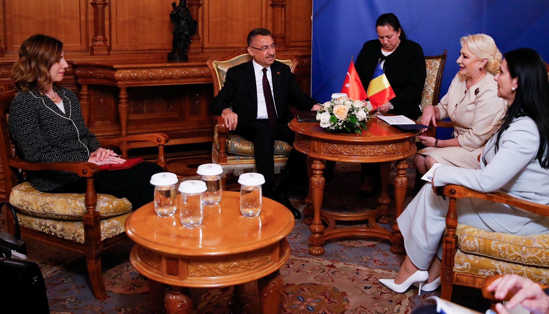 Cumhurbaşkanı Yardımcısı Fuat Oktay, "Onur Konuğu" olduğu Romanya-Bulgaristan-Sırbistan-Yunanistan Dörtlü Zirvesi'ne katılmak üzere geldiği Bükreş'te, Romanya Başbakanı Viorica Dancile ile heyetler arası görüşme gerçekleştirdi. ( Muhammet Fatih Oğraş - Anadolu Ajansı )