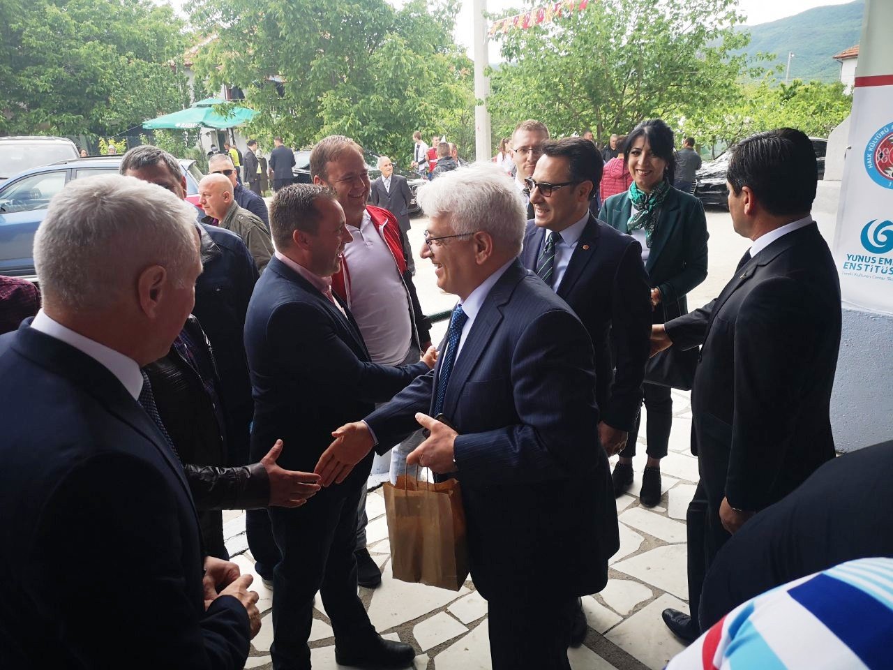 28. Hıdırellez Bahar Şenliklerine katılmak için Valandova’ya gelen CEVİZ Hayvancılık ve Tarımcılık Derneği üye çiftçileri, projenin uygulandığı yıllarda TİKA proje uzmanı olarak Yörük Türkleri ile birlikte Doğu Makedonya’da projelerde sahada çalışarak onlara yıllarca destek olan, ancak bugün TİKA Balkanlar ve Doğu Avrupa Dairesi Başkanı olarak Rumeli’ye hizmet eden Dr. Mahmut Çevik’i ürettikleri ballar ile karşılayarak TİKA’ya teşekkürlerini ilettiler.
