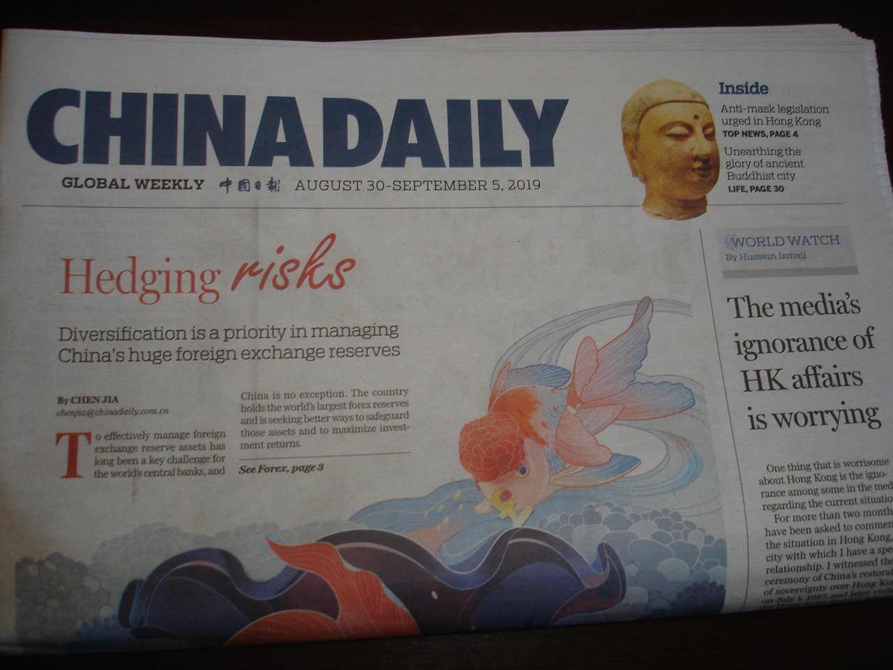 Sonra bir otele görüşme için gittim. Oteldeki gazete standındaki “Chine Daily” adlı Çin gazetesinin İngilizce küresel versiyonunu gördüm.
