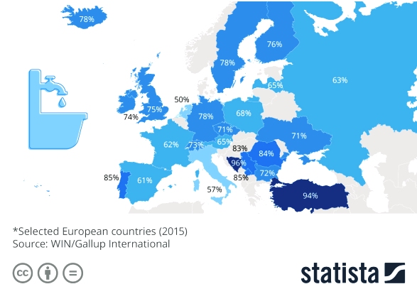 BÜKREŞ (Gazete Balkan)- Gallup International adlı araştırma kurumunun 2015 yılında yaptığı bir araştırma ile Avrupa’da hijyene en çok dikkat eden ülkelerin haritasını çıkardığı belirlendi.