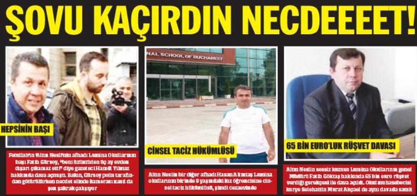 Romanya’da FETÖ güdümlü Lumina Okullarının başı Fatih Gürsoy polisler eşliğinde mahkemeye götürülürken, yada bilmem ne adlı eski FETÖ gazetecisi aynı şekilde polise adliyeye götürülürken neşenin zirvesinde çekimler yaparak sonra şova dönüştüren necdet FETÖ güdümlü okulun 9 yaşındaki kız öğrencisine cinsel taciz hükümlüsü Hasan Altuntaş olayında ortalıkta görünmedi. Hasta filan olmuştur diye kaygılanmışlığımız olmuştu.