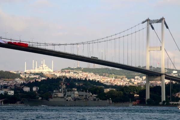 Fransız Donanmasına bağlı savaş gemisi ise Türk Boğazlarından Cumartesi günü geçerek Karadeniz’e açılmıştı. Pazar günü de ABD Donanmasının 6. Filosuna bağlı, güdümlü füze firkateyni DDG 78 Borda numaralı ‘USS Porter’ saat 18.00 sıralarında Marmara Denizi’nden İstanbul Boğazı’na giriş yapmıştı. Savaş gemisinin İstanbul Boğazı’ndan geçişine çok sayıda sahil güvenlik botu da eşlik etmişti.