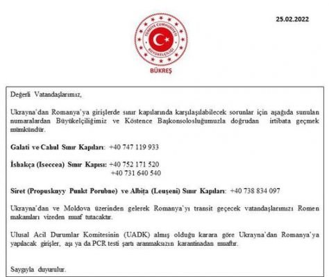 Türk vatandaşlarını taşıyan otobüsler, sabah saatlerinde Romanya sınırında bulunan Orlivka bölgesine ulaştı. Ülkeyi terk etmek isteyenler Orlivka Sınır Kapısı’nda 20 kilometre uzunluğunda araç kuyruğu oluşturdu. Türk vatandaşları, yaklaşık 6 saattir kuyrukta beklediklerini söyledi.