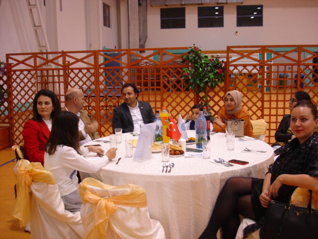 Bükreş Uluslararası Maarif Okulu kapalı salonunda verilen yemeğine Bükreş Eğitim Müşaviri Seyfi Özkan, Türkiye Maarif Vakfı Romanya Direktörü Alpaslan Ateş, Bükreş Uluslararası Maarif Okulu Müdürü Zeki Uysal ile Vakıf ve Okul yetkilileri ev sahipliği yaptı.