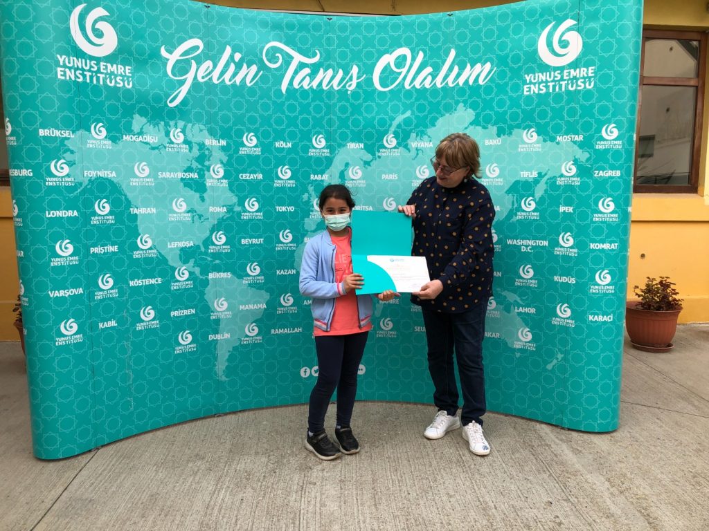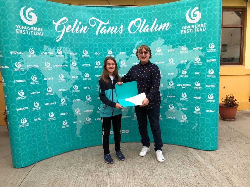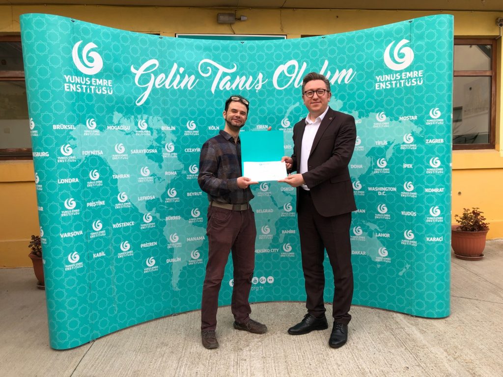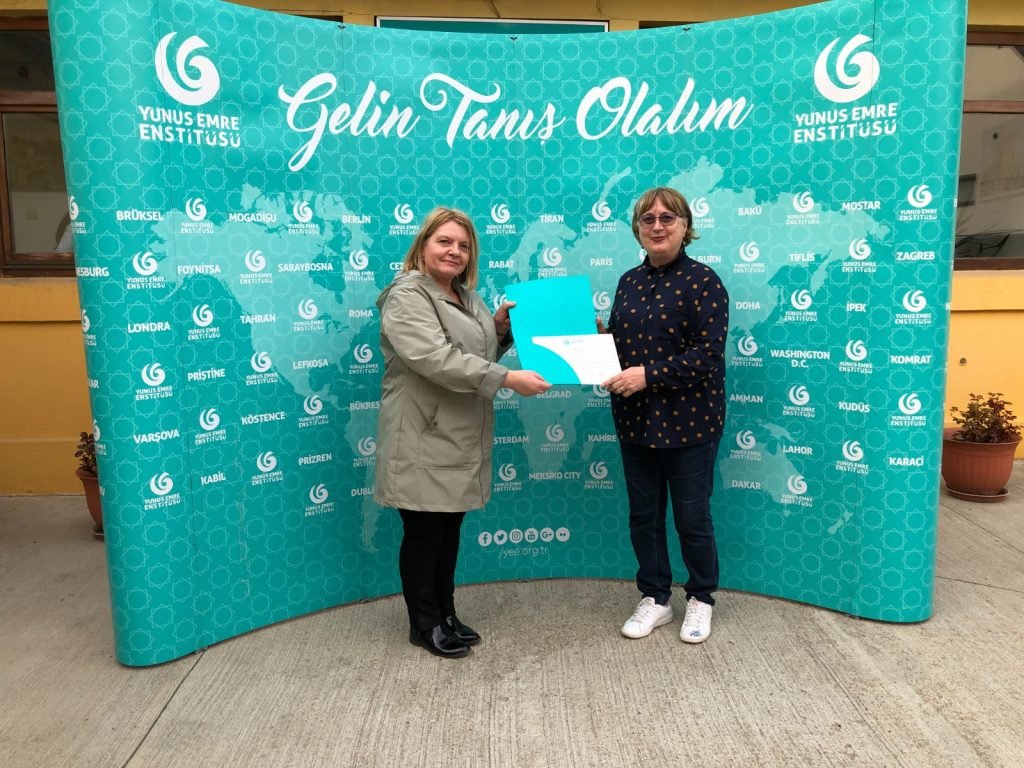 Kültür sanat faaliyetleri kapsamında Bükreş Yunus Emre Enstitüsünde Rumenlerin büyük ilgisiyle başlayan Ebru Sanatı kursun ilk dönemi sona erdi ve sertifika almaya hak kazananlara sertifikaları Bükreş YEE Müdürü Mustafa Yıldız ve Ebru Sanatı eğitmeni Rodica Parvan tarafından takdim edildi.