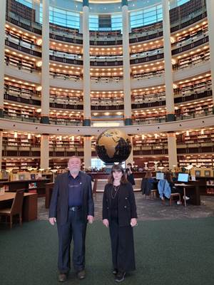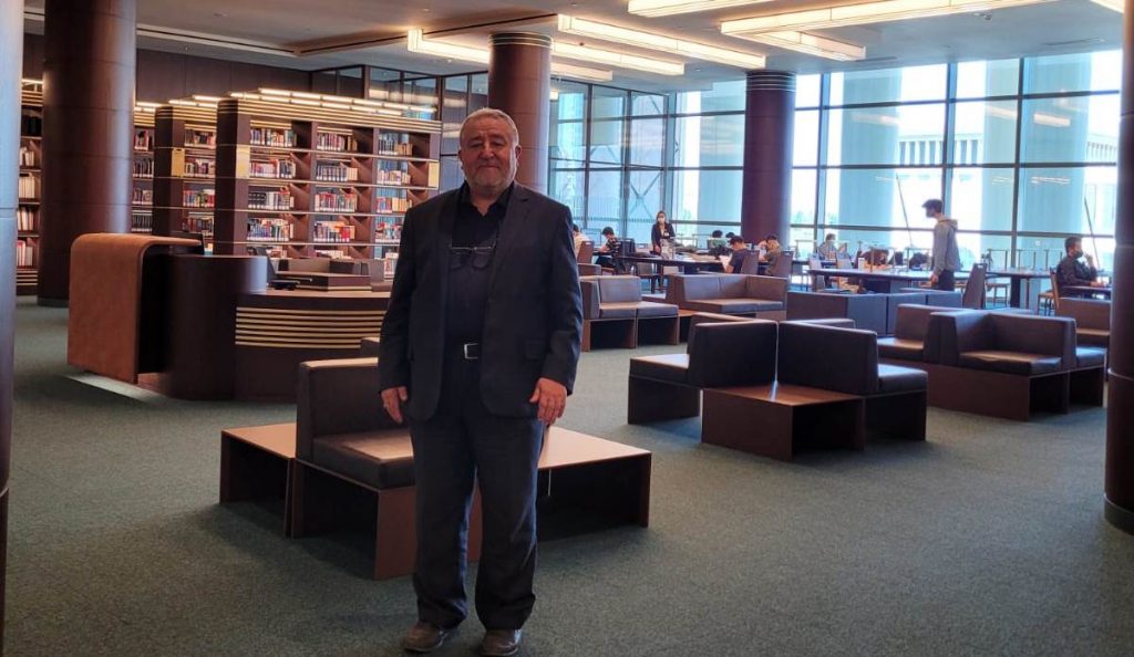 Eğitim Müşaviri Özkan, daha sonra Milli Kütüphane personeli Birtane Özdemir eşliğinde, uzunluğu 201 kilometre olan, raflarında 100 farklı ülkeden 134 farklı dilde 4 milyon kitap barındıran Milli Kütüphaneyi gezdi.