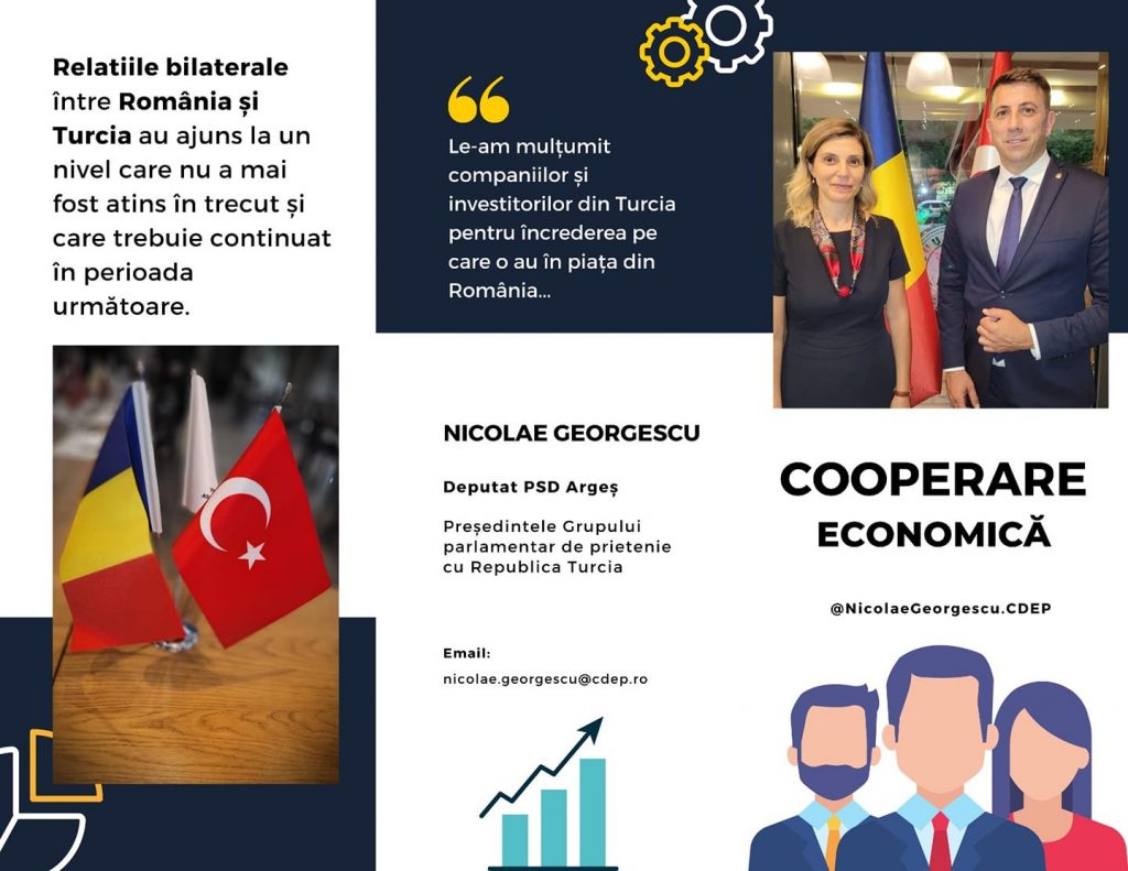 Türkiye Cumhuriyeti ile Parlamento Dostluk Grubu başkanı olarak, Türk şirketlerine ve yatırımcılara Romanya pazarına duydukları güven ve yarattıkları istihdam için teşekkür ediyorum, çünkü ülke içindeki sorunlara rağmen yatırım yapmaya ve Romanya’nın ekonomik kalkınmasını desteklemeye devam ediyor.”