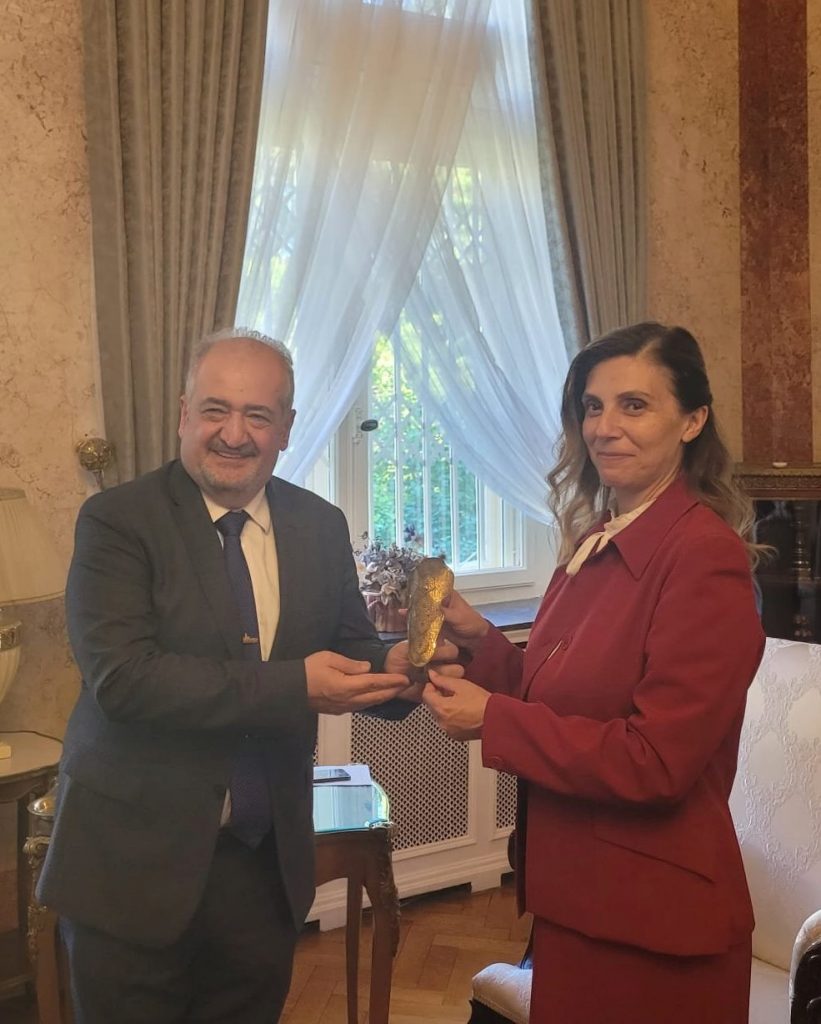 Savunma Sanayi başkan yardımcısı Serdar Demirel Başkanlığı’ndaki heyet de Büyükelçi Aramaz’ı makamında ziyaret etti.