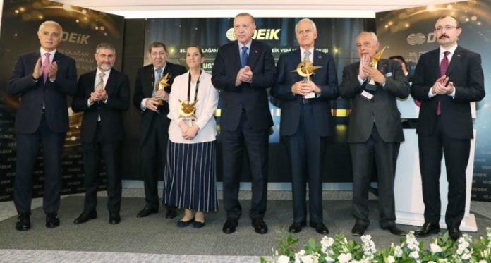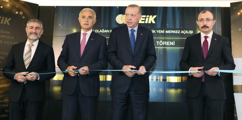 Dış Ekonomik İlişkiler Kurulu (DEİK) yeni merkezinin açılışı ve II. Ustalara Saygı Ödül Töreni İstanbul’da Cumhurbaşkanı Recep Tayyip Erdoğan, Ticaret Balkanı Mehmet Muş, Maliye Bakanı Nureddin Nebati’nin katılımı ile gerçekleştirildi.