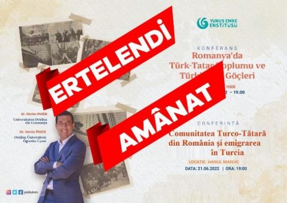 *Bükreş Yunus Emre Enstitüsü’nün dün saat 19:00’da gerçekleştireceği konferans, konferansı verecek olan Dr. Metin Ömer’in küresel salgın Covid 19’a yakalanması üzerine ertelendi