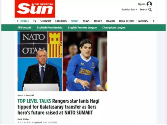İngiliz basını, Cumhurbaşkanı Recep Tayyip Erdoğan’ın NATO Liderler Zirvesi’nde Romanya Cumhurbaşkanı Klaus Werner Iohannis ile gerçekleştirdiği “Hagi” sohbetini manşetine taşıdı. Cumhurbaşkanı Erdoğan’ın Iohannis’den özellikle Gheorghe Hagi ve oğlu Ianis hakkında bilgi almak istediğini yazan gazetenin haberine değinen Romanya basını da “Erdoğan, Ianis Hagi’yi Galatasaray’a getirmek için uğraşıyor” başlıklı haberler servis etti.