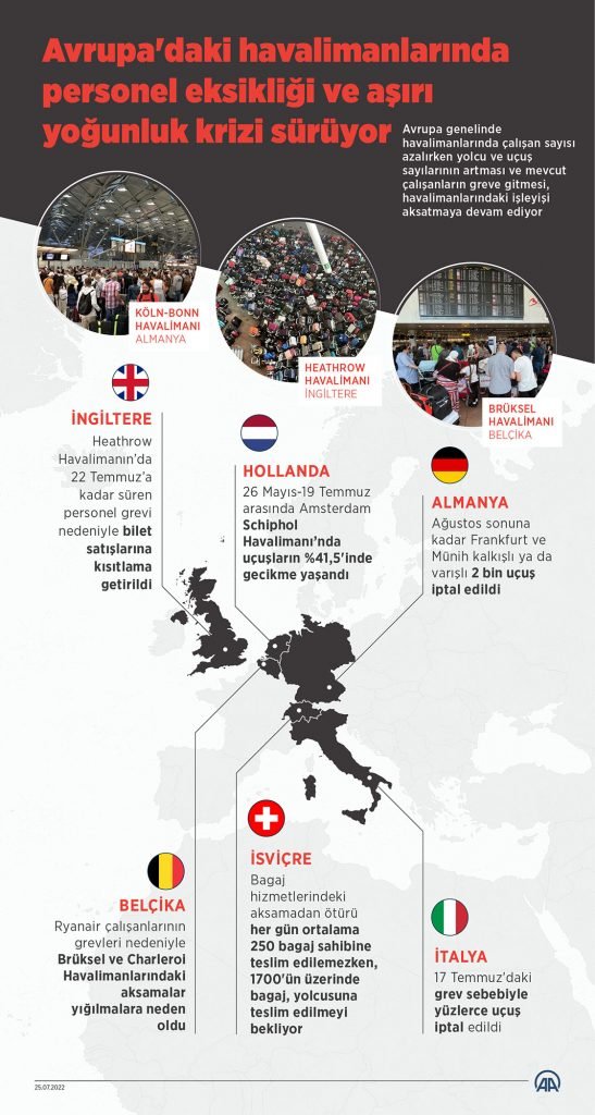 *Avrupa ülkelerindeki havalimanlarında personel eksikliği ve aşırı yoğunluk krizi sürüyor