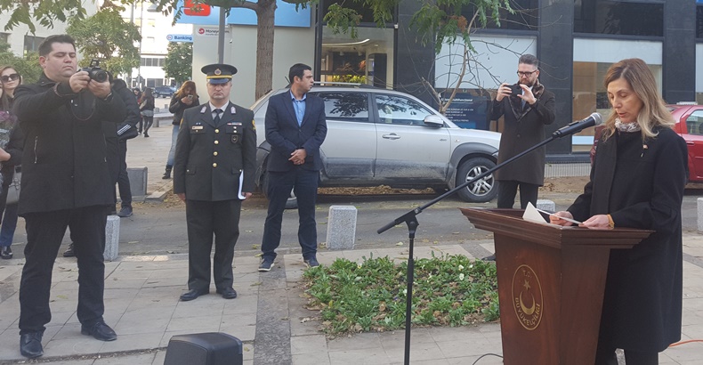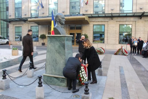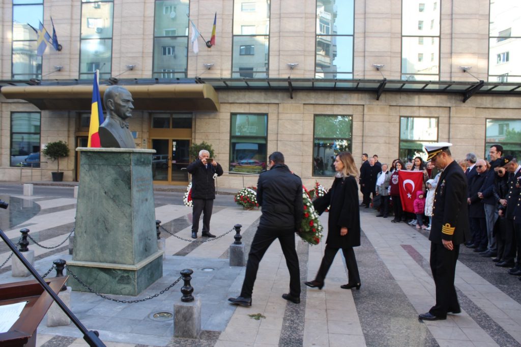 Ardından Türkiye’nin Bükreş Büyükelçisi Füsun Aramaz Atatürk Büstü’ne çelenk koyarak saygı duruşunda bulunduktan sonra bir konuşma yaptı.