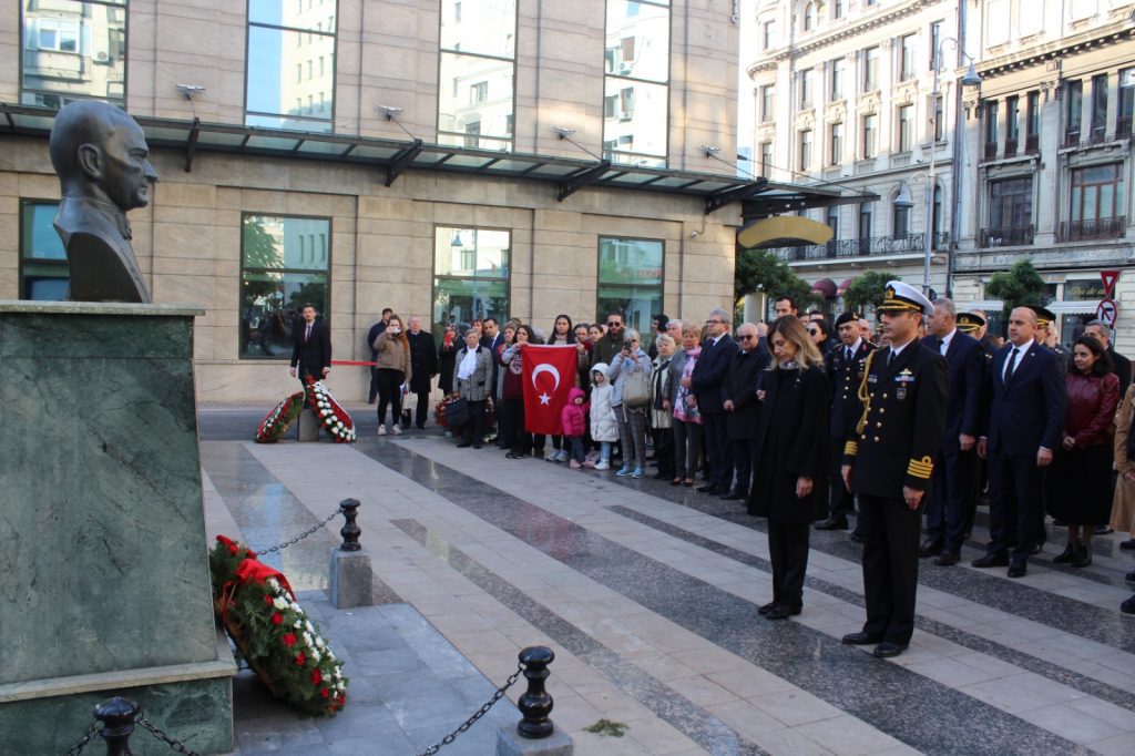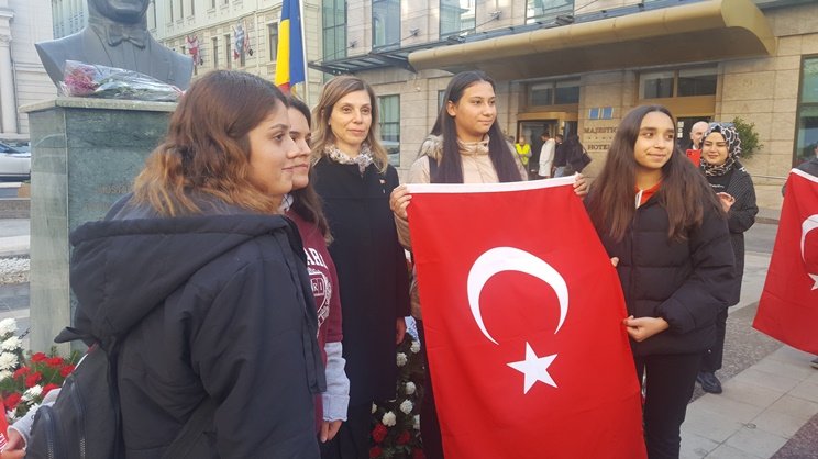 Bükreş merkezli Türk ve soydaş sivil toplum kuruluşları ile bazı kuruluşlar aralıklarla Atatürk Büstü’ne çelenk bırakılarak saygı duruşu gerçekleştirdiler.