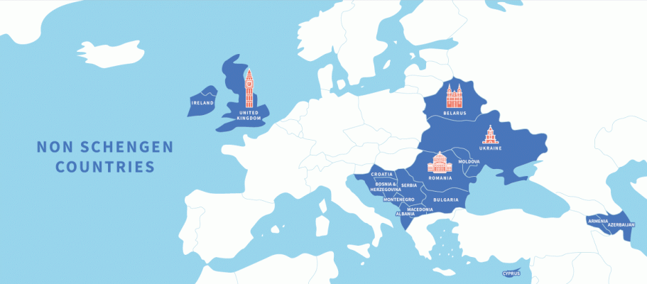 Schengen bölgesi şu anda çoğu AB üyesi olan 26 üye ülkeye sahiptir. Avrupa Birliği’nin 27 üyesi bulunmaktadır. Dört AB ülkesi hala Schengen’in bir parçası değil: Romanya, Bulgaristan, Hırvatistan ve Kıbrıs Rum Kesimi.
