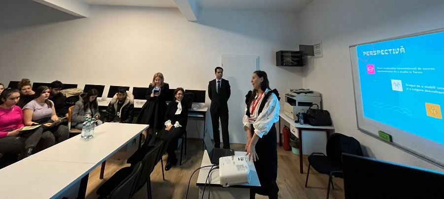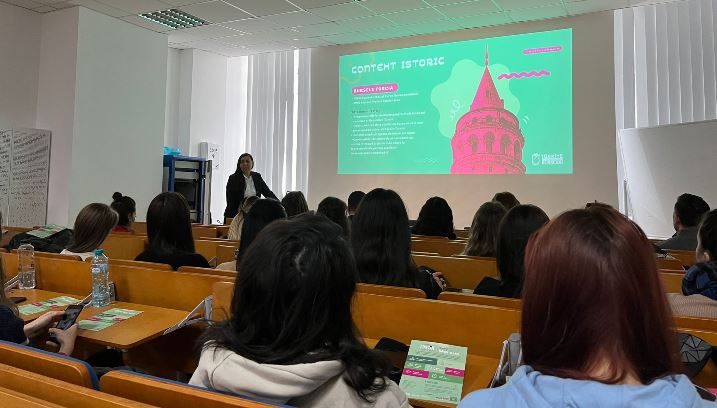 YTB Koordinatörü Arife Pehlivan başkanlığında Uzman Semra Neşe Asan, Uzman Aydın Özgören ve Uzman Yardımcısı Elif Yalçın Akçam’dan oluşan heyet Köstence’de üniversite öğrencileri ile bir araya gelerek yabancı öğrencilere sunulan Türkiye Bursları çerçevesinde Türkiye, şehirleri ve üniversitelerinin tanıtımını yaptı.