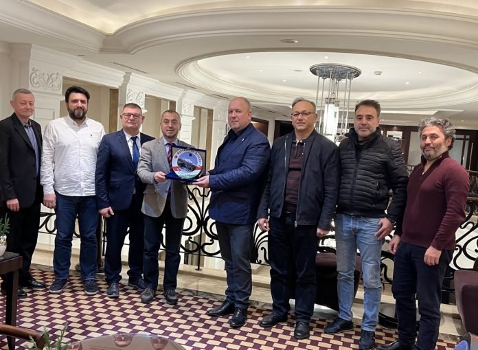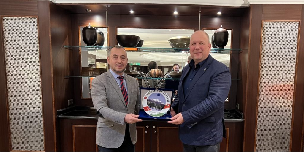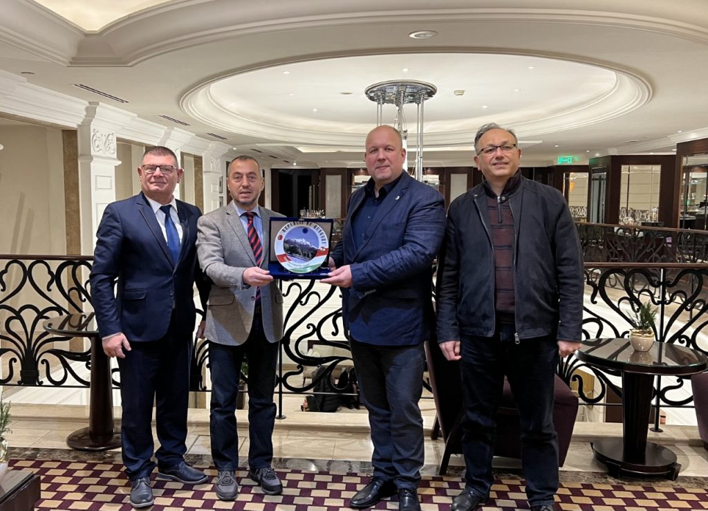 Osman Şahbaz Zoltán Hossó’ya Kayseri Erciyes Dağı kompozite edilmiş porselen tabak ve ürettikleri çoraplardan hediye etti.