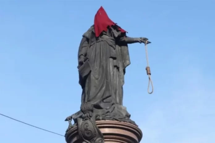 Odesa Şehir Konseyi 30 Kasım’da Rus asker Aleksander Suvorov ve II. Katerina’nın tasvir edildiği “Odesanın Kurucuları” heykelinin yıkılması için alınan kararı kabul etti.
