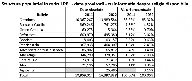 Romanya İstatistik Enstitüsü (INS), 2021 yılı Nüfus ve Konut Sayımının ilk geçici verilerini Cuma günü yayınladı. Romanya’nın 2011’de yapılan nüfus sayımından bu yana 1,1 milyon kişiyi kaybettiği bağlamda, neredeyse tüm dini tarikatlar cemaatçilerini kaybetti. Bu arada dinsiz ve ateist sayısındaki artış Romanya’da Ortodoks Patriği Daniel ve ekibi harekete geçirdi.