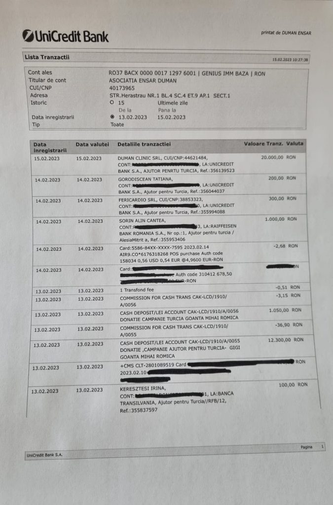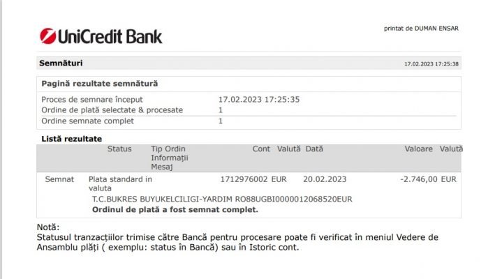 *Romanya Türk Toplumu içerisinde sağlık turizmi alanındaki faaliyetleri ve Rumen toplumu tarafından sevilişi ve güvenirliği ile ön plana çıkan iş adamı Ensar Duman’ın kendi adı ile kurduğu hayır faaliyetleri yürüten Ensar Duman Vakfı tarafından Cuma günü akşamı itibarı ile 26 bin 500 Euro Bükreş Büyükelçiliği’nin açtığı Deprem yardımı hesabına aktarıldı
