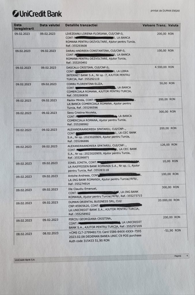 Ensar Duman Derneği bu hafta parayı, tamamı Türkiye’nin güneyindeki mağdurların yararına yönetecek olan AFAD ve AHBAP’a (Türkiye Afet ve Acil Durum Yönetimi Başkanlığı) yönlendirecek.