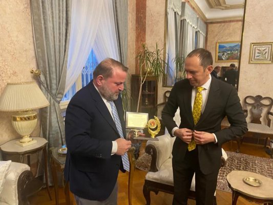 *Bükreş Büyükelçisi Özgür Kıvanç Altan, Dobruca Türk İşadamları Derneği (DTİAD) Başkanı Ömer Karahasanoğlu öncülüğündeki heyeti makamında kabul etti