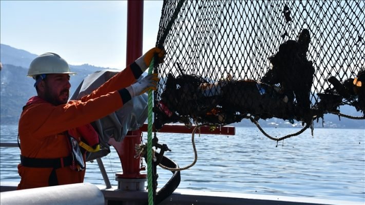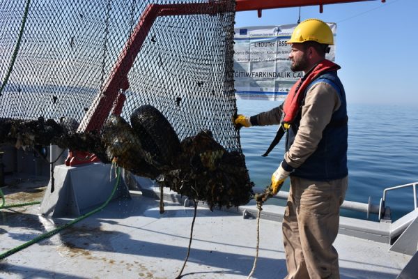 Karadeniz açıklarında 60 metre altından yapılan dip aramada plastik atıklar, ayakkabı, otomobil lastiği gibi birçok çöpün çıktığı görüldü.