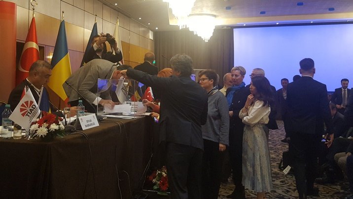 Bükreş Büyükelçisi Özgür Kıvanç Altan, Büyükelçilik Müsteşarı Erdal Onat, Ticaret Müşaviri Mehmet Naci Akdoğan, Yunus Emre Enstitüsü Romanya Koordinatörü Mustafa Yıldız da genel kurul toplantısının başlangıç kısmına katıldı ve daha sonra salondan ayrıldılar.