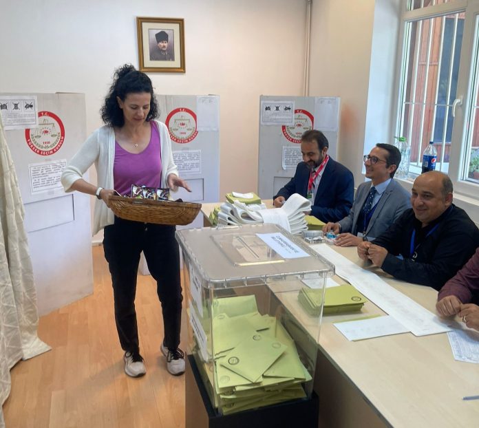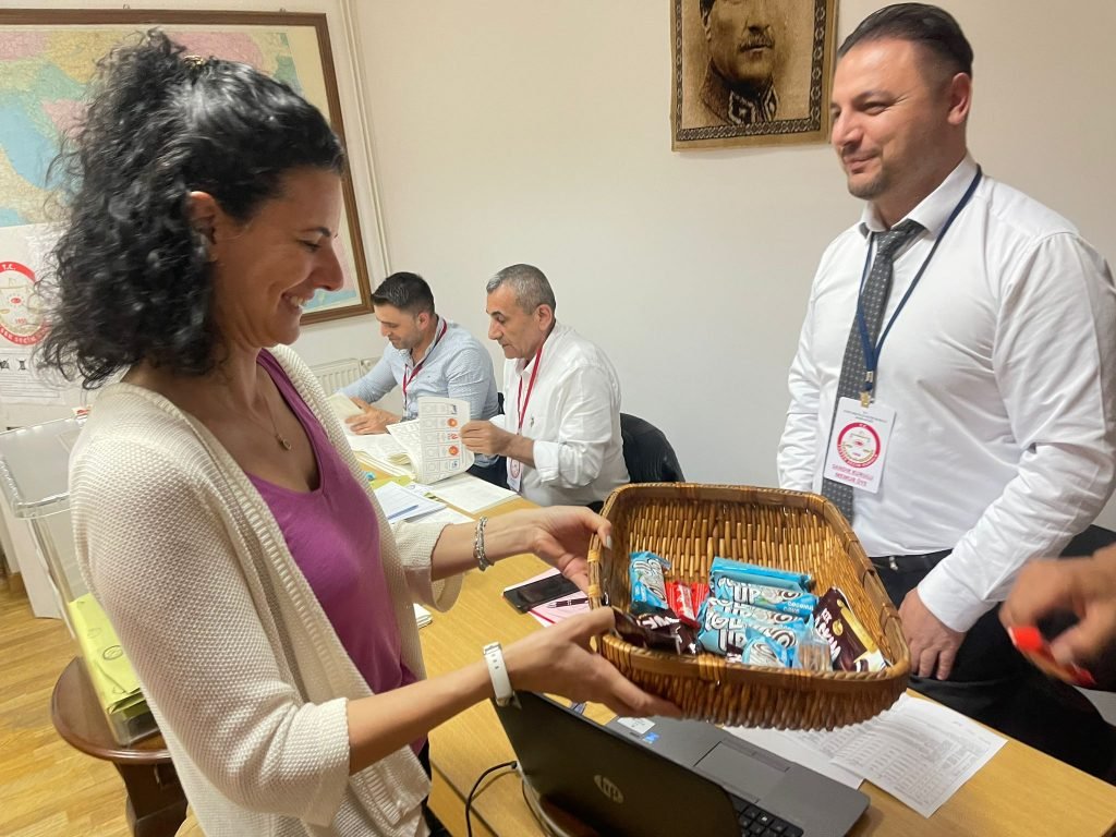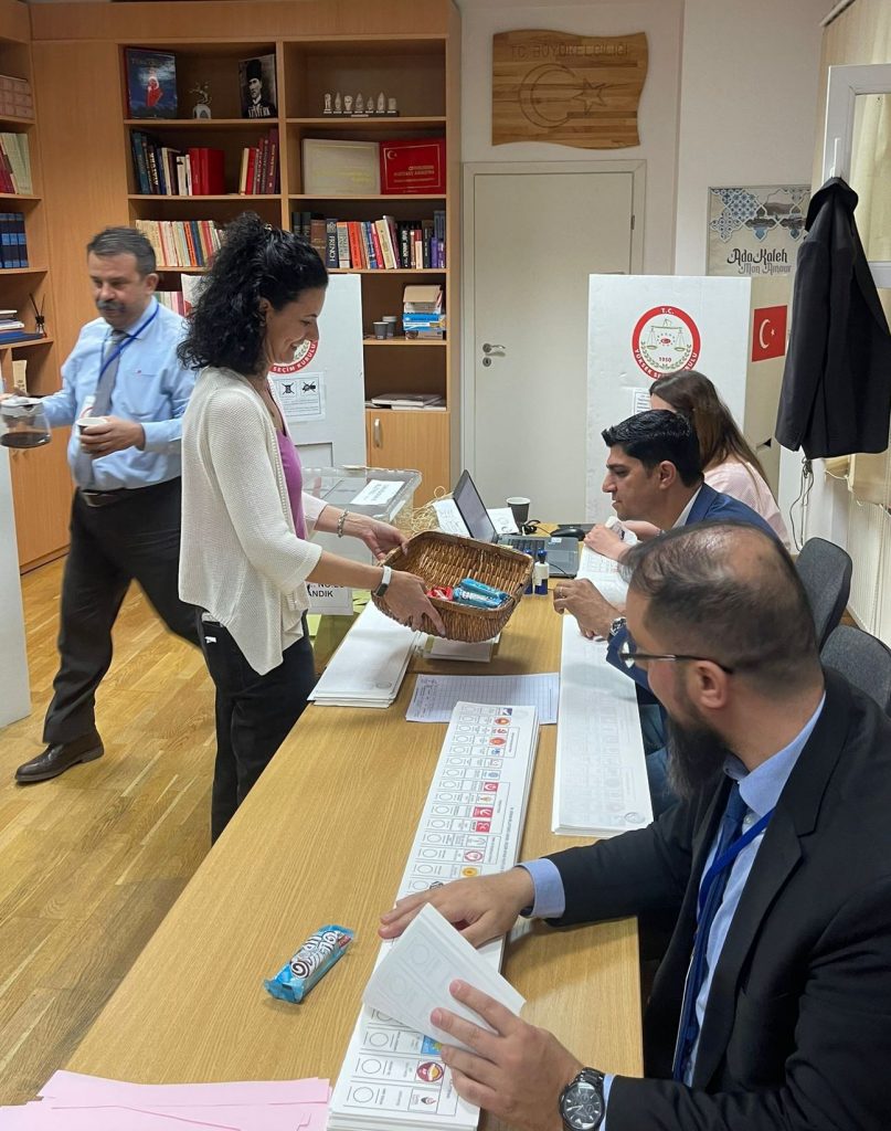 GündemROMANYA Aslı Hanım’dan seçim sandığı görevlilerine ikram 8 Mayıs 2023 0 74 Cumartesi günü Bükreş’te oy verme işlemi devam ederken, görevleri başında ayrılamayan sandık kurulu görevlilerine ikram Bükreş Büyükelçimizin eşi Alı Altan Hanımefendiden geldi. Aslı Hanım, sandık kurulu üyelerine kendi eliyle ikramda bulundu. TweetlePaylaşPaylaş0 Paylaşımlar