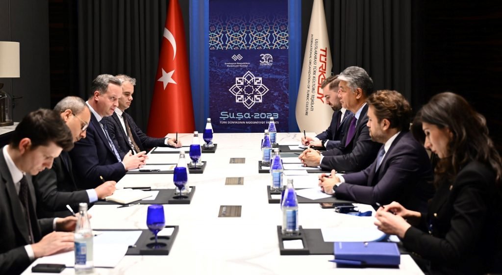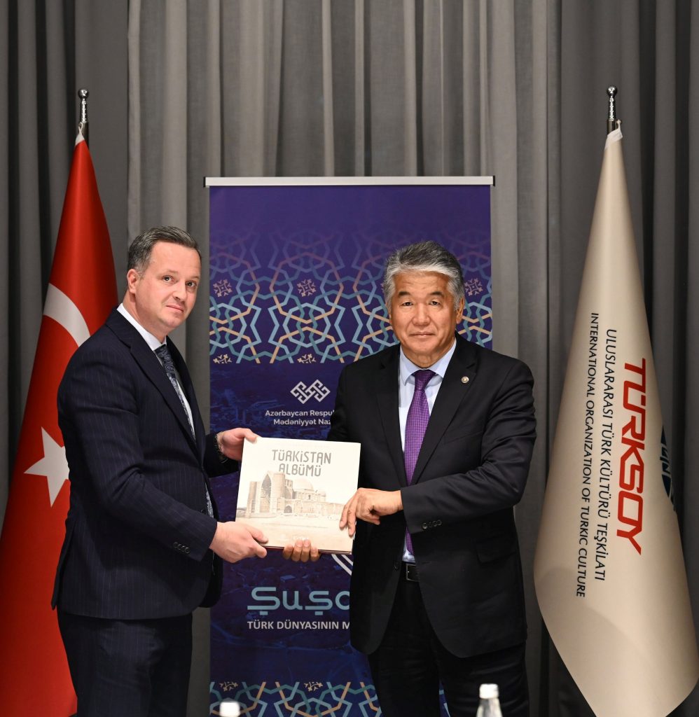 Şuşa’nın kültür başkenti açılış etkinliklerine katılan TİKA Başkanı Serkan Kayalar Uluslararası Türk Kültürü Teşkilatı Genel Sekreteri Sultan Raev ve heyeti ile bir araya geldi.