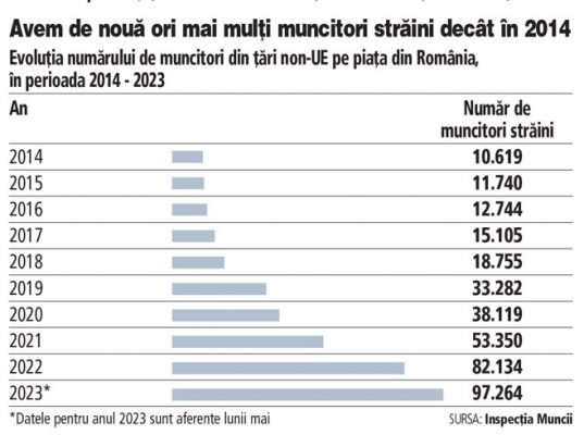 Yurtdışında daha yüksek maaş arayan göçmen sayısıyla tanınan bir ülke olan Romanya, Avrupa Birliği dışından gelen işçiler için cazip bir iş yeri haline geldi. Dolayısıyla, Business Magazin Gazetesi’nin talebi üzerine Çalışma Müfettişliği tarafından gönderilen verilerin gösterdiği gibi, şu anda piyasada 97.300 yabancı işçi var, yani AB dışı ülkelerden.