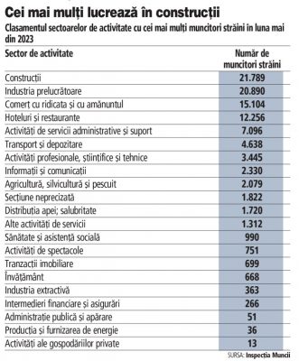 Romanya pazarında çalışan AB üyesi olmayan ülkelerden gelen işçilerin yaklaşık yüzde 60’ı üç faaliyet sektöründe yoğunlaşmıştır: inşaat, imalat ve ticaret. Dolayısıyla Asyalı işçi istihdam eden faaliyet sektörlerinin başında 21 bin 800’e yakın yabancı çalışanla inşaat sektörü geliyor. İmalat sanayinde yaklaşık 20.900 yabancı işçi çalışıyor ve perakende ve toptan satışta AB üyesi olmayan ülkelerden 15.100’den fazla işçi var.