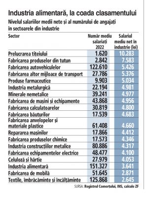 “Böylece, gıda endüstrisindeki ortalama net maaş, imalat sanayiindeki maaşlar arasında 17. sırada yer alıyor, Ulusal İstatistik Enstitüsü verilerine göre, et, süt veya ekmek üretiminde bir çalışan Nisan ayında ayda ortalama sadece 3.641 ley kazanıyor.