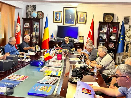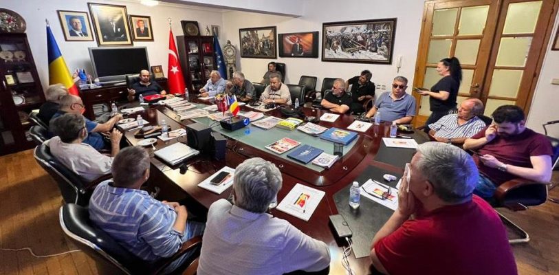 Macaristan’da Ulusal ve Uluslararası düzeyde olmak üzere 2 yılda bir yapılan Turan Kurultayı’na katılmak üzere Türkiye’den otobüsle yola çıkan Kaptan Mustafa Can başkanlığındaki İlteriş Vakfı heyeti Bükreş’te Romanya Türkiye Ticaret ve Sanayi Odası’nı ve Calea Victoria üzerindeki Atatürk Büstünü ziyaret etti.