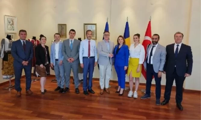 *ULUSKON Genel Başkanı ve beraberindeki heyet, Romanya Büyükelçiliği’ne gerçekleştirdiği ziyarette, Türkiye ve Romanya arasındaki ticaret hacminin artırılması için atılabilecek adımları ele aldı. Gıda, enerji, sağlık ve tarım sektörlerinin iş birliği potansiyeli vurgulandı