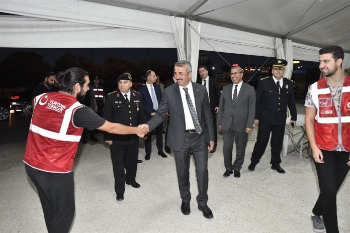 Diğer taraftan karşı tarafta yangın oluyor, benzeri sıkıntılar olabiliyor. Burada yığılmalar olabilir ‘vatandaşlarımız mağdur olmasın’ diye Yurt Dışı Türkler ve Akraba Topluluklar Başkanlığı burada bir sosyal alan oluşturmuş durumda. Orada çocuk parklarından yine aynı şekilde ikram araçlarına kadar yine sivil toplum kuruluşlarımızın benzer çalışmaları var. AFAD’ı da görevlendirdik.”