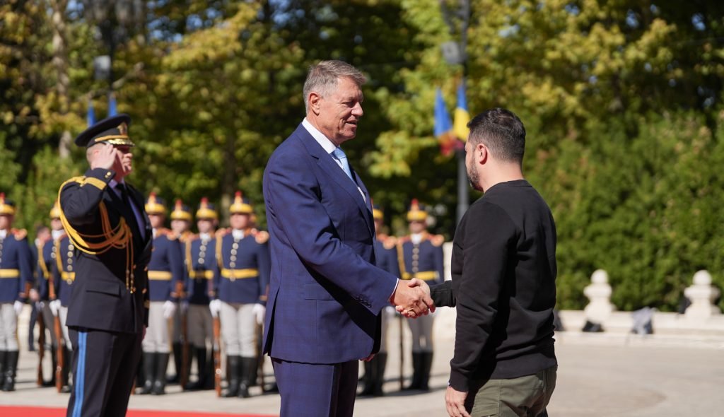 Zelenskiy, resmi ziyarette bulunduğu Romanya’nın başkenti Bükreş’te Cumhurbaşkanı Klaus Werner Iohannis tarafından resmi törenle karşılandı.