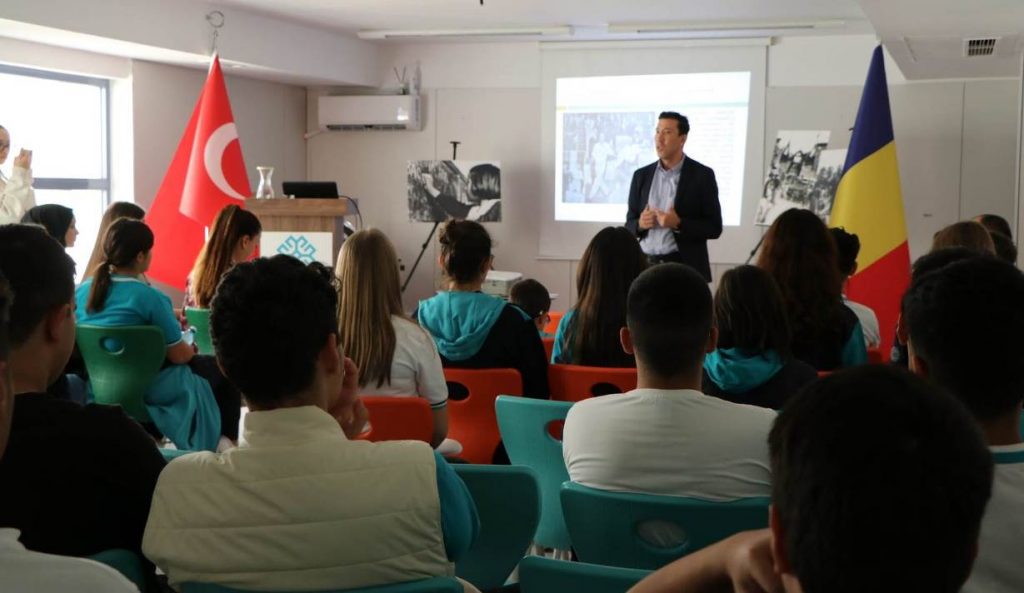 *Türkiye Cumhuriyeti’nin kuruluşunun 100. yılı etkinlikleri kapsamında Romanya Uluslararası Maarif Okullarında “Romen Kamuoyu Gözüyle Cumhuriyet ve Atatürk” konulu bir söyleşi gerçekleştirildi. Söyleşiye Türkiye Maarif Vakfı Romanya Temsilcisi Alpaslan Ateş de katıldı