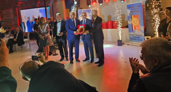 Cumhurbaşkanı Baş Danışmanı Yalçın Topçu konuşmasının ardından tekrar sahneye davet edilen Romanya’nın eski Cumhurbaşkanı Emil Constantinescu ve Romanya Türkiye Ticaret ve Sanayi Odası Başkanı Tamer Atalay tarafından “Türk Dünyasına Hizmet Ödülü” verildi