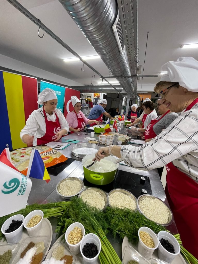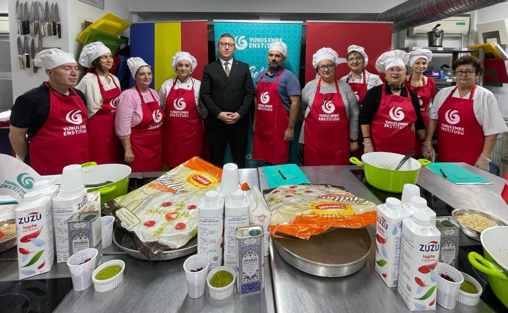 Yunus Emre Enstitüsü Romanya Müdürü Mustafa Yıldız, kursiyerlerle yemeklerle ve Türk üretimi zeytinyağı ve kullanılan alanlarla ilgili bilgiler verdi ve özelliklerini anlattı. Türk mutfağında sıfır atık teknikleriyle kalan her parça yiyeceğin bambaşka bir ürüne dönüşerek sürdürülebilirliğe katkı sağlıyor, aynı zamanda da Türk yemeklerinin özelliklerinin bilinmesi ve buna göre tüketilmesi ruh ve beden sağlığı arasındaki dengeyi gözeten şifa kaynağı olma özelliğini de sağlıyor. Bugün bu atölye ile çok geniş olan Türk mutfağından küçük bir demet sunduk. Bu atölye çalışmalarımız belli zaman aralıklarıyla devam edecek.