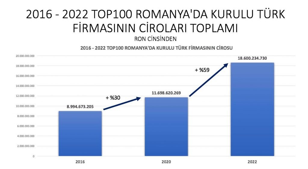 Romanya’da yerleşik Türk firmalarının 2016’dan 2022 ikiye kadar olan süredeki toplam cirolarının sürekli biçimde arttığını görüyoruz.