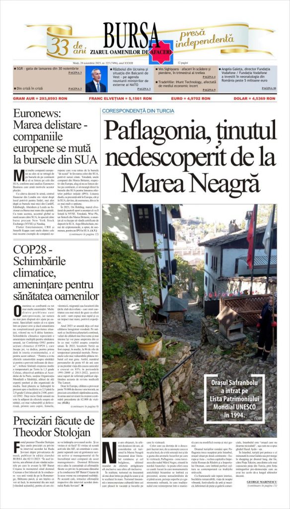 Romanya’nın ticaret gazetelerinden Bursa gazetesi “Karadeniz’in keşfedilmemiş diyarı Paphlagonia” başlığı ile yayınladığı yazıda Kuzey Anadol’unun gözde kentleri Safranbolu ve Amasra’yı anlattı