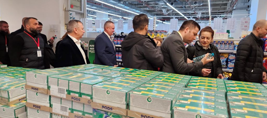 Senato Başkanı Ciucă ve beraberindekiler daha sonra La Cocoş (Horoz) hipermarketini gezerek satın aldıkları pet şişedeki ürünler için ödedikleri sembolik 50 bani (0,5 ley) ücreti Garanti-İade Sistemi projesi çerçevesinde mağaza girişine yerleştirilen aparatlardan geri alma işlemini gerçekleştirdiler.