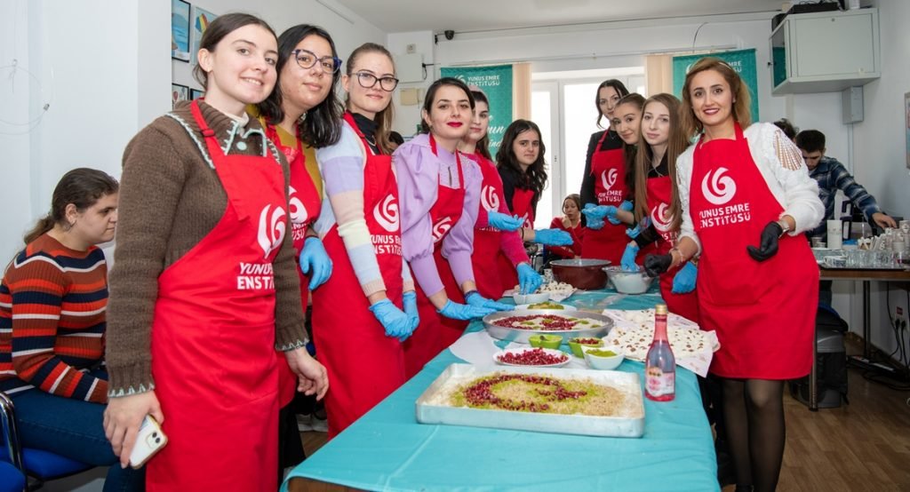 Köstence’de Türkiye’ye Türkçeye ve Türk kültürüne gönül verenler lokum ve güllaç hazırlayıp kahve pişirdi.
