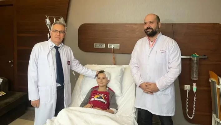 Mateo’nun beynindeki tümörde büyüme saptadıklarını söyleyen Beyin ve Sinir Cerrahisi bölümünden Prof. Dr. Mehmet Reşid Önen, ‘Hasta bize geldiğinde genel durumunda çok ciddi bir sıkıntı yoktu. Ancak daha önce ciddi bir epileptik nöbet nedeniyle tanısı konulmuş, ardından beyin tümörü saptanarak başka bir merkezde ameliyat edilmiş. Ameliyatta hayati risk yaşanmasın diye beyin tümörünün riskli bölgeleri bırakılmıştı. İlk ameliyat sonrası bırakılan tümör kısmında büyüme saptadık. Bizim tavsiyemiz ve hasta yakınlarının isteğiyle bu riskli bölgedeki tümörlerin çıkarılması yönündeydi. Biz de ileri teknoloji kullanarak ve cerrahi tecrübemizle riskli bölgedeki tümör dokusunu çıkarmak için gerekli hazırlıkları yaptık. Ameliyat sonucunda tespit ettiğimiz tümör dokusunu tamamen çıkardık ve hastamızı sağlıklı bir şekilde kliniğe alarak takiplerini yaptık. Herhangi bir problemle karşılaşmadık. Bir aksilik olmadığı taktirde hastamızı en kısa sürede taburcu etmeyi planlıyoruz’ ifadelerini kullandı.