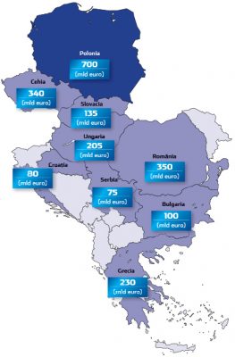 Bu rakam Romanya’yı Balkanlar’da ve bölgede Polonya’dan sonra ikinci sıraya yerleştiriyor. Romanya’nın 2024 yılındaki 350 milyar avroluk GSYİH’si, Bulgaristan’dan (100 milyar avro), Macaristan’dan (205 milyar avro) ve hatta Çek Cumhuriyeti’nden (240 milyar avro) daha yüksektir.