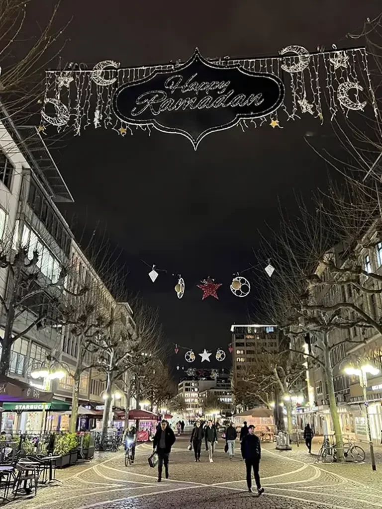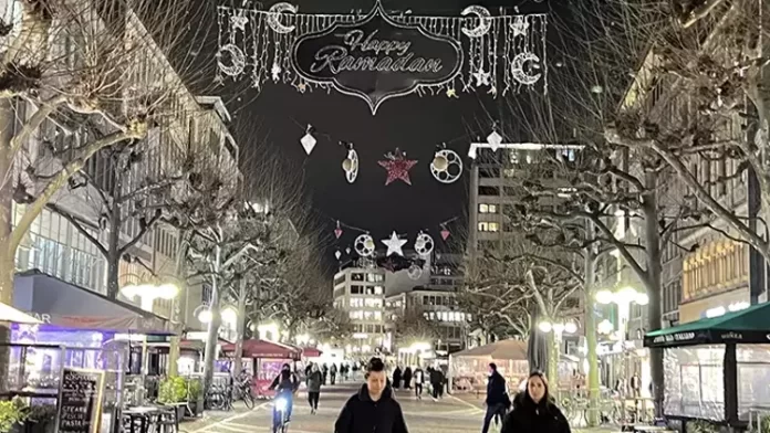 Avrupa’nın finans merkezi Frankfurt, ana caddesi Fressgass’ı Ramazan ayına özel hilaller, yıldızlar ve kandillerle süsleyerek ülkede bir ilki gerçekleştirdi.